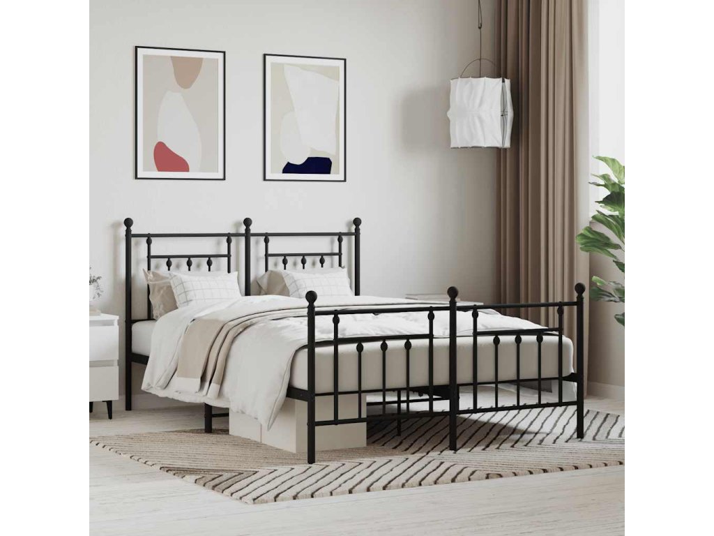 Kovový rám postele s hlavovým a nožním čelem černý 140 x 200 cm 353556