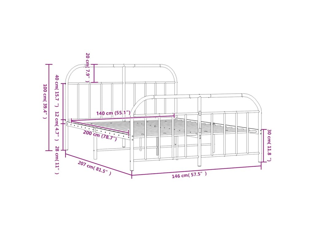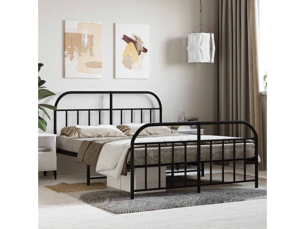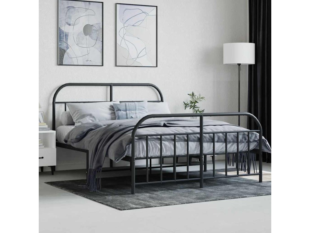 Kovový rám postele s hlavovým a nožním čelem černý 140 x 200 cm 353654