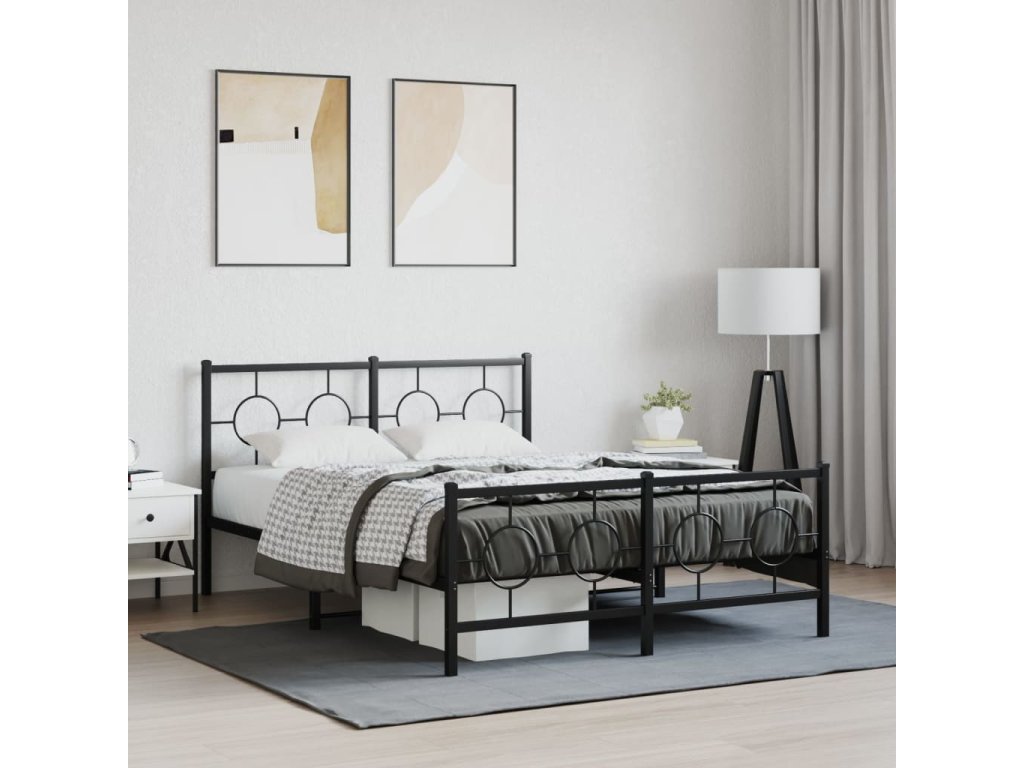 Kovový rám postele s hlavovým a nožním čelem černý 140 x 200 cm 376245