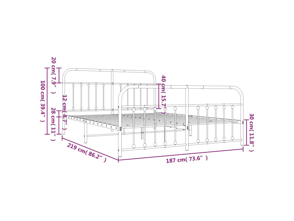 Kovový rám postele s hlavovým a nožním čelem černý 183 x 213 cm 352601