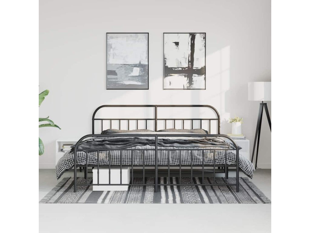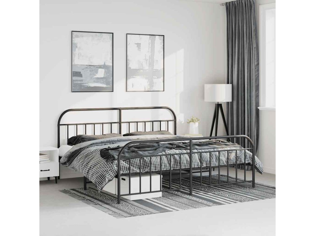 Kovový rám postele s hlavovým a nožním čelem černý 183 x 213 cm 353658