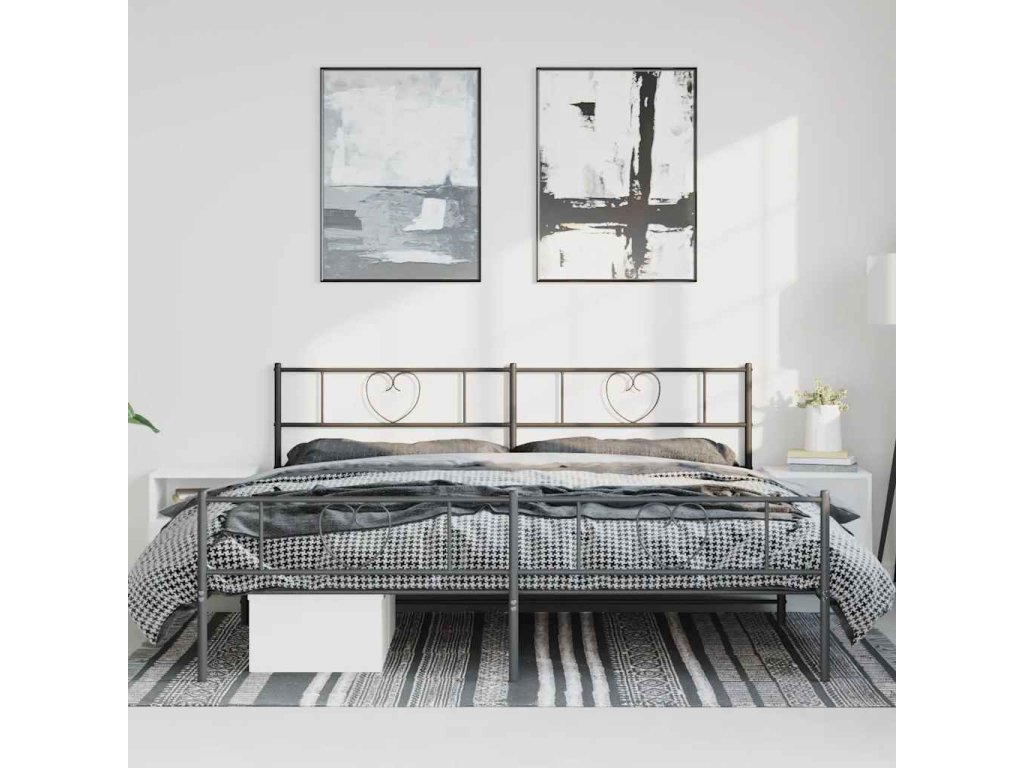 Kovový rám postele s hlavovým a nožním čelem černý 183 x 213 cm 355486