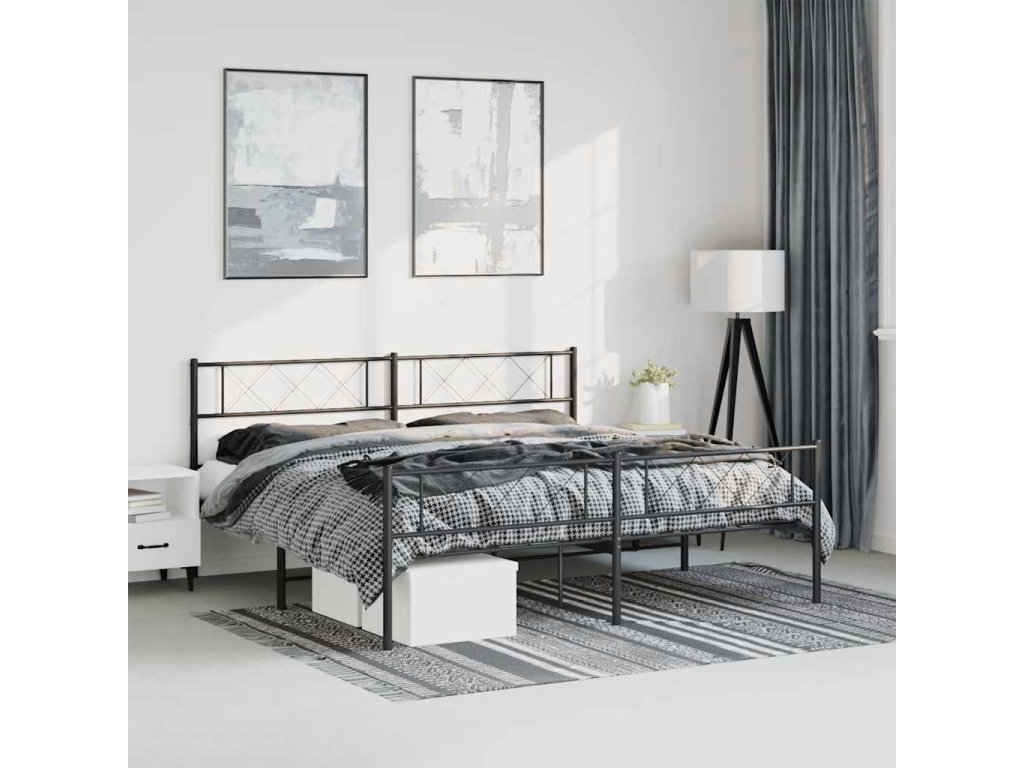 Kovový rám postele s hlavovým a nožním čelem černý 183 x 213 cm 372300
