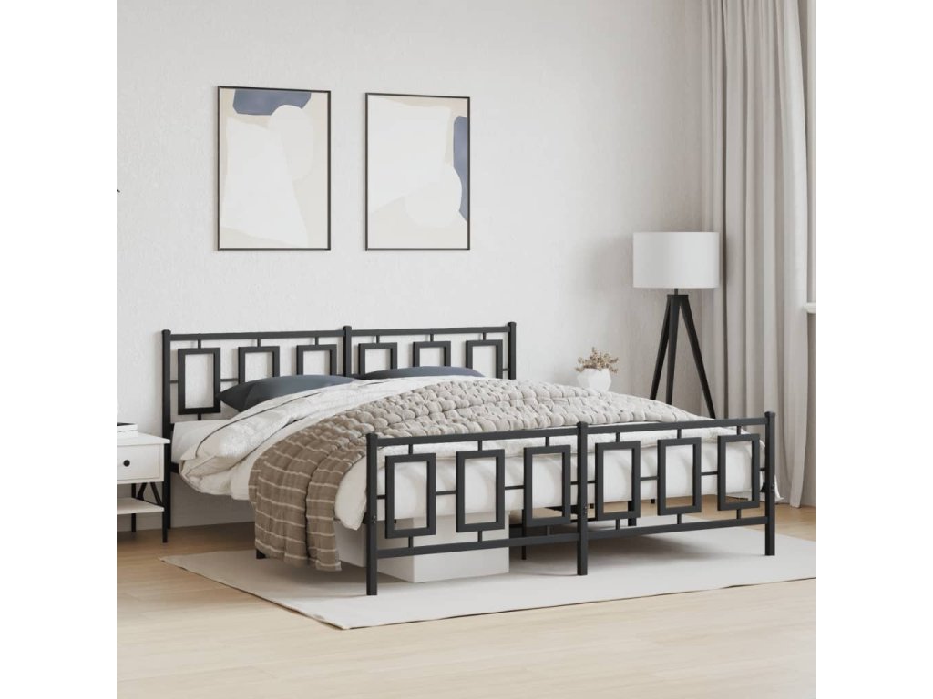 Kovový rám postele s hlavovým a nožním čelem černý 183 x 213 cm 374264