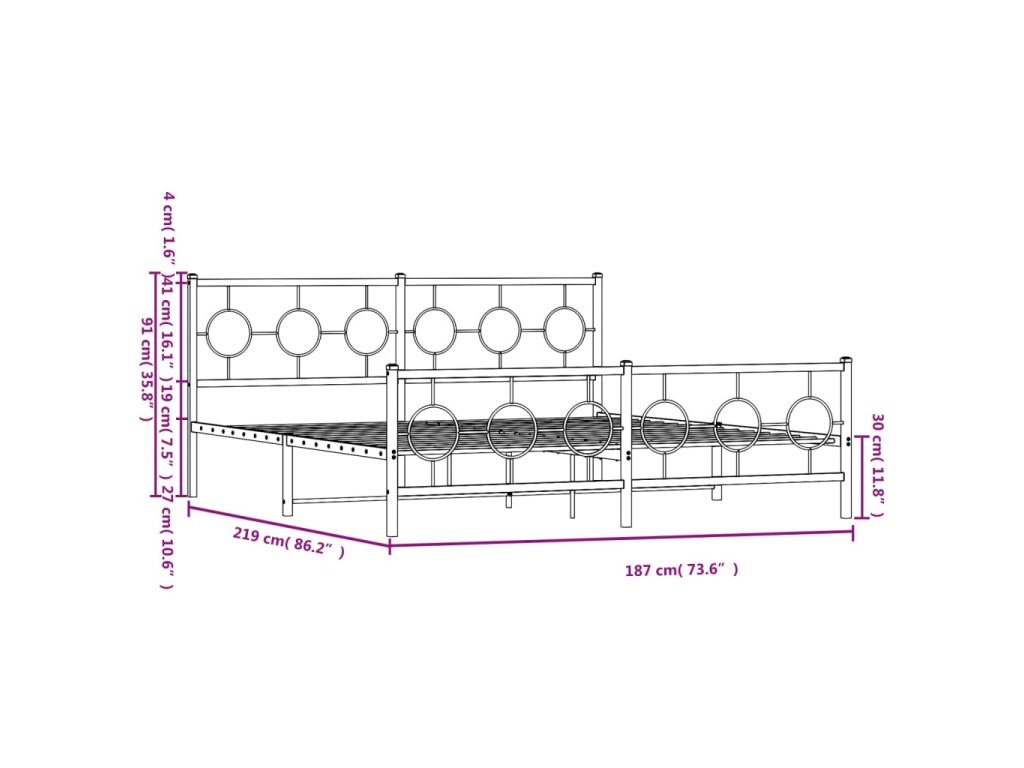 Kovový rám postele s hlavovým a nožním čelem černý 183 x 213 cm 376249