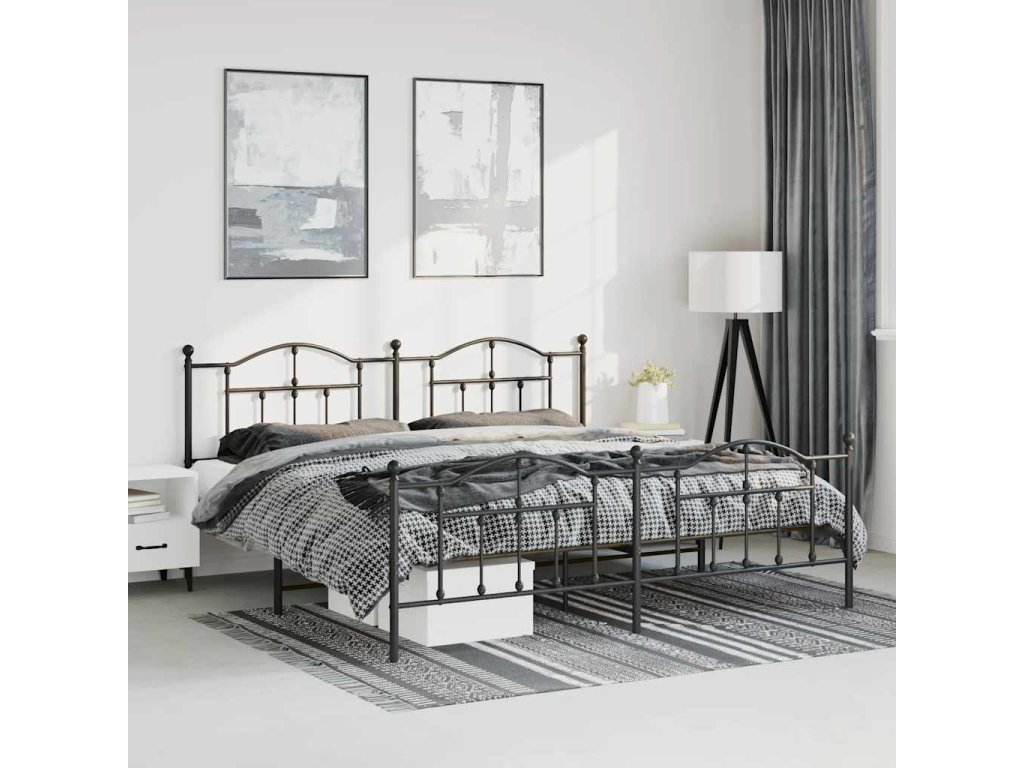 Kovový rám postele s hlavovým a nožním čelem černý 193 x 203 cm 353463