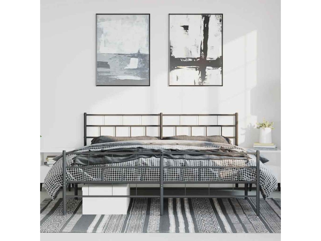 Kovový rám postele s hlavovým a nožním čelem černý 193 x 203 cm 355683
