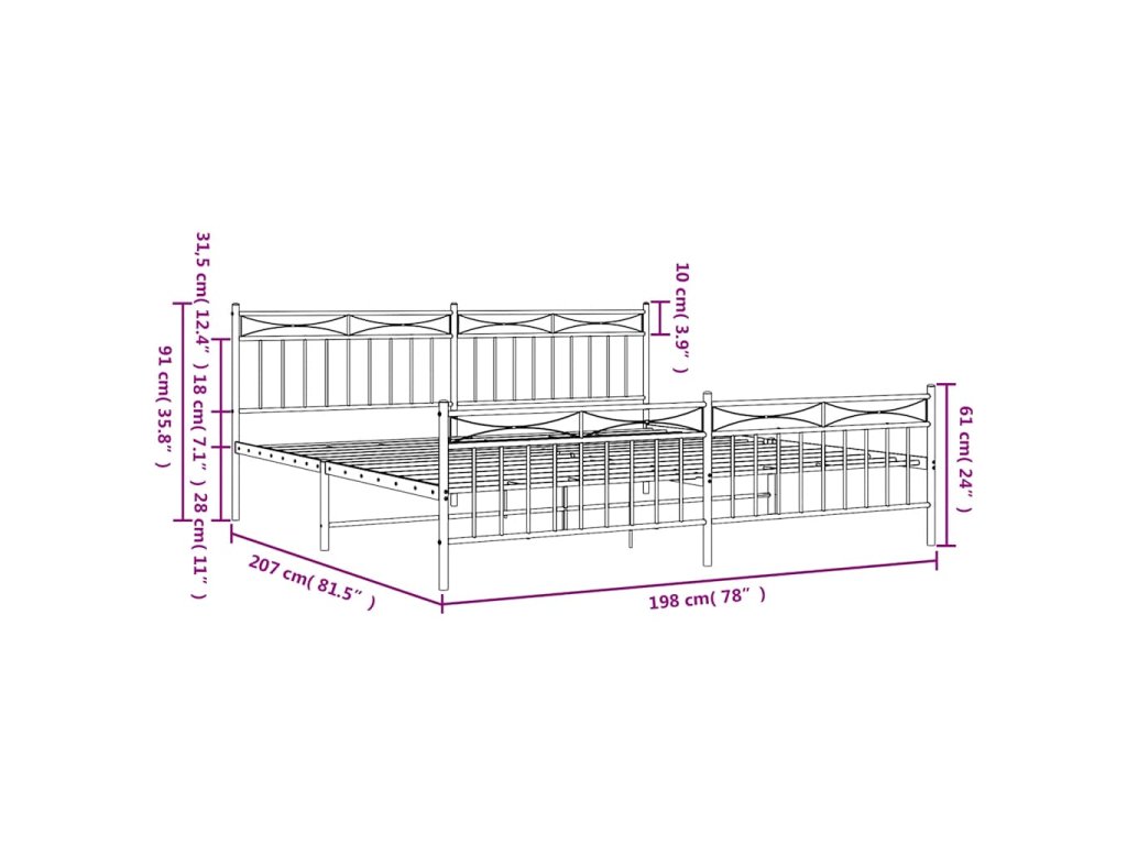 Kovový rám postele s hlavovým a nožním čelem černý 193 x 203 cm 373715