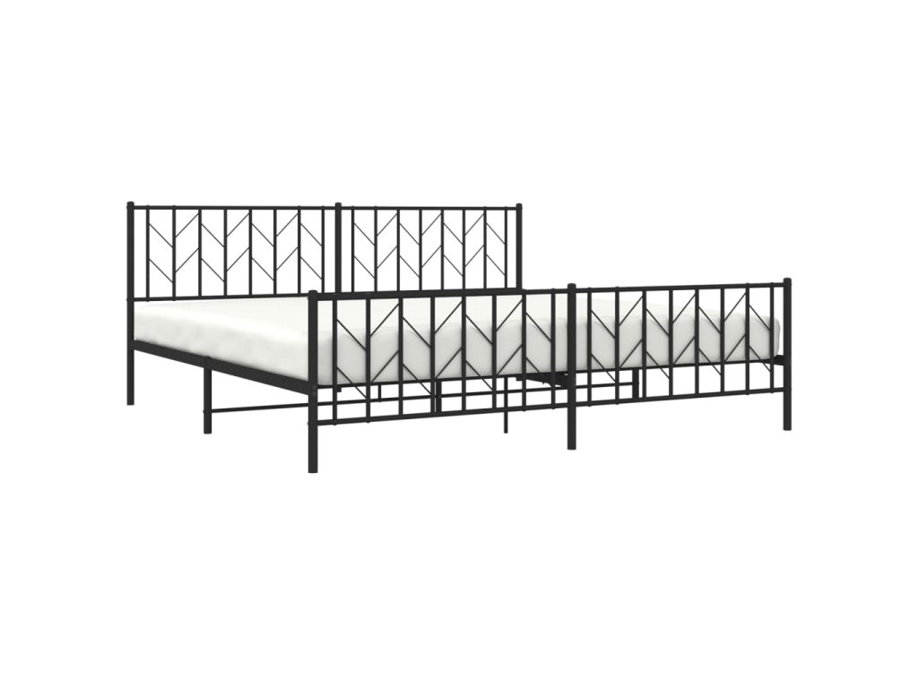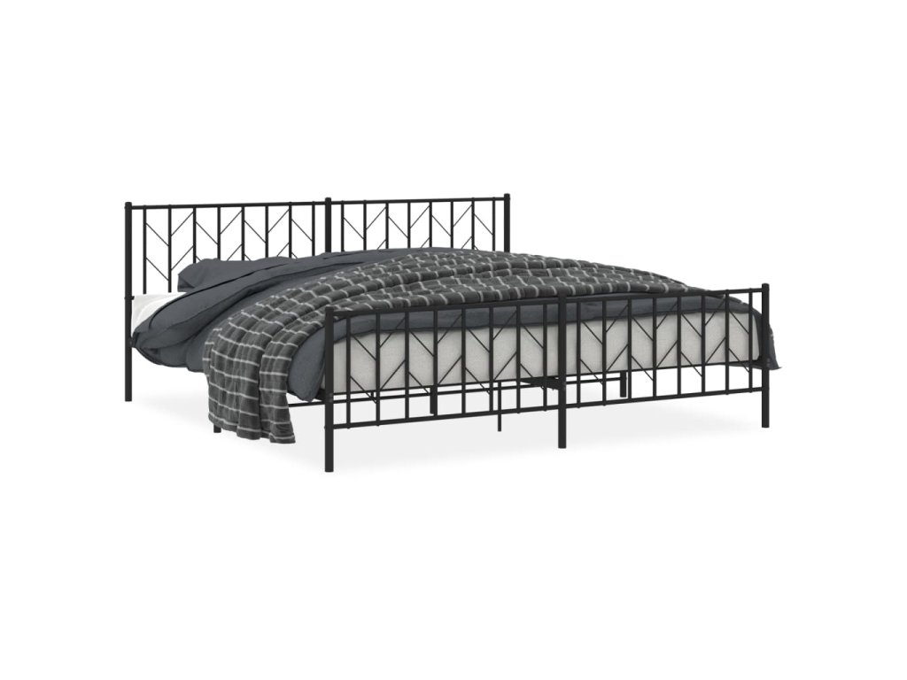 Kovový rám postele s hlavovým a nožním čelem černý 200 x 200 cm 374462