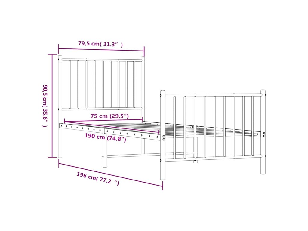 Kovový rám postele s hlavovým a nožním čelem černý 75 x 190 cm 350872