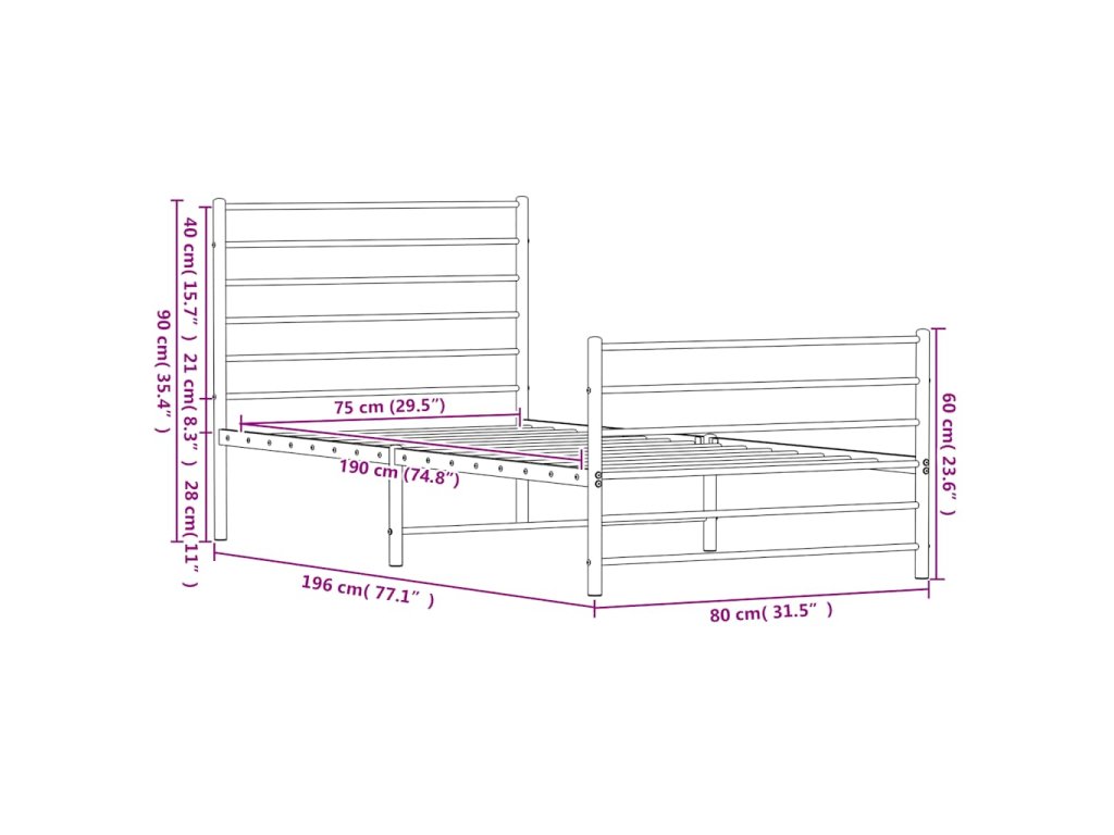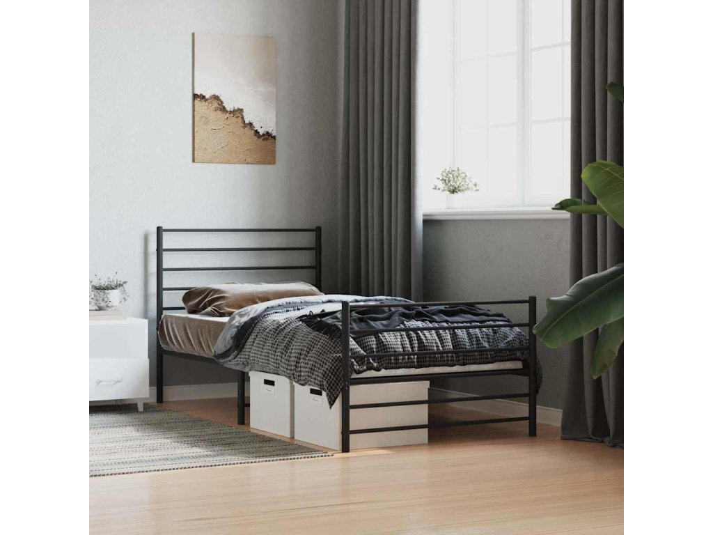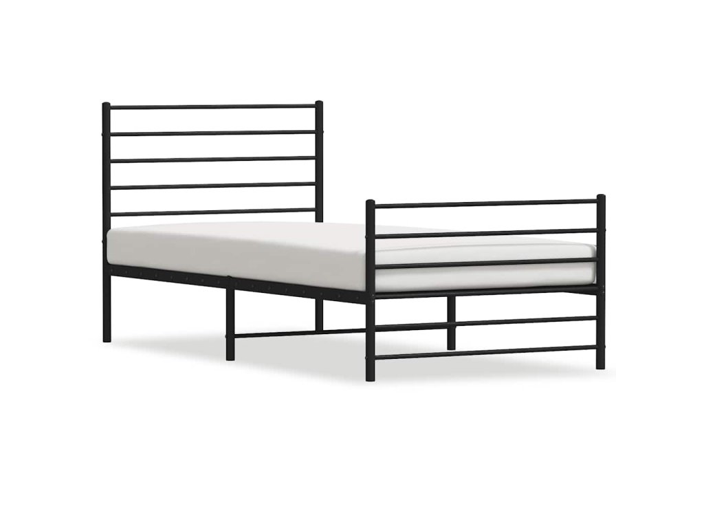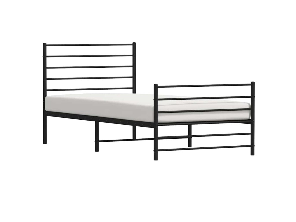 Kovový rám postele s hlavovým a nožním čelem černý 75 x 190 cm 352327