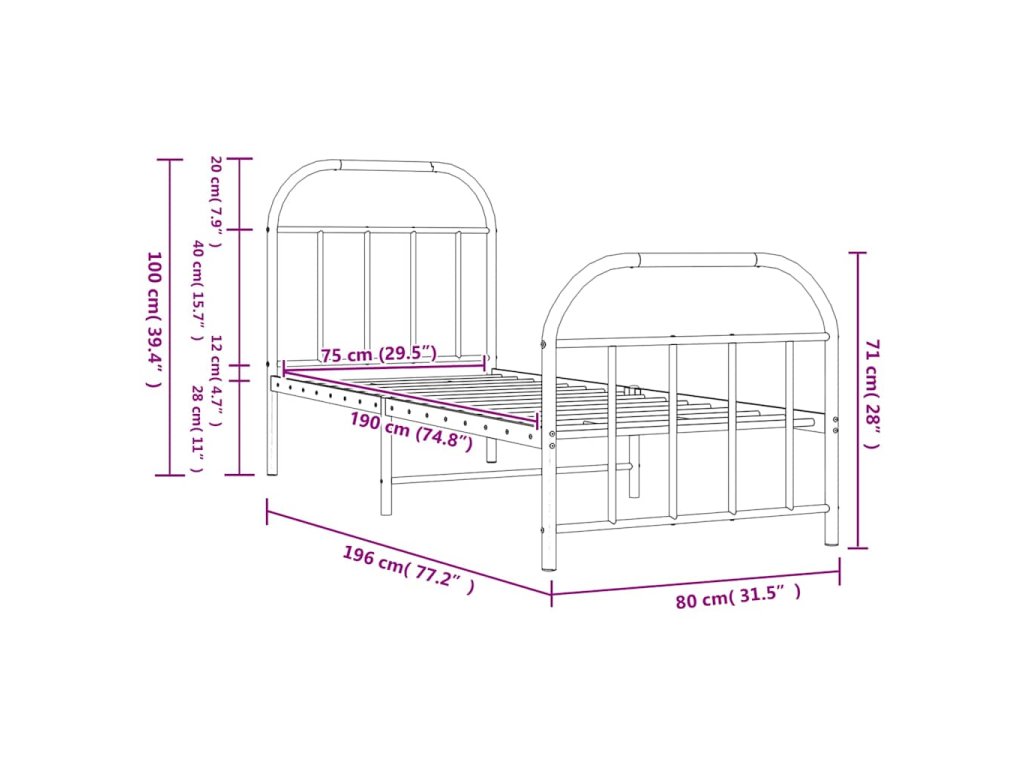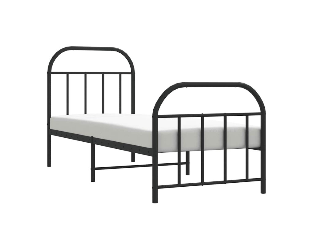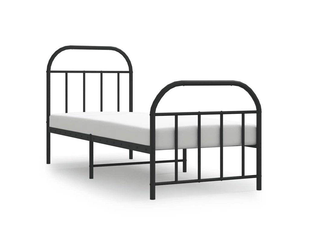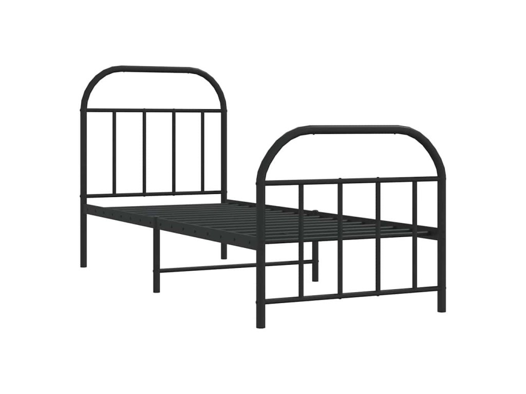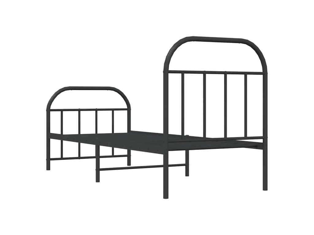 Kovový rám postele s hlavovým a nožním čelem černý 75 x 190 cm 353643