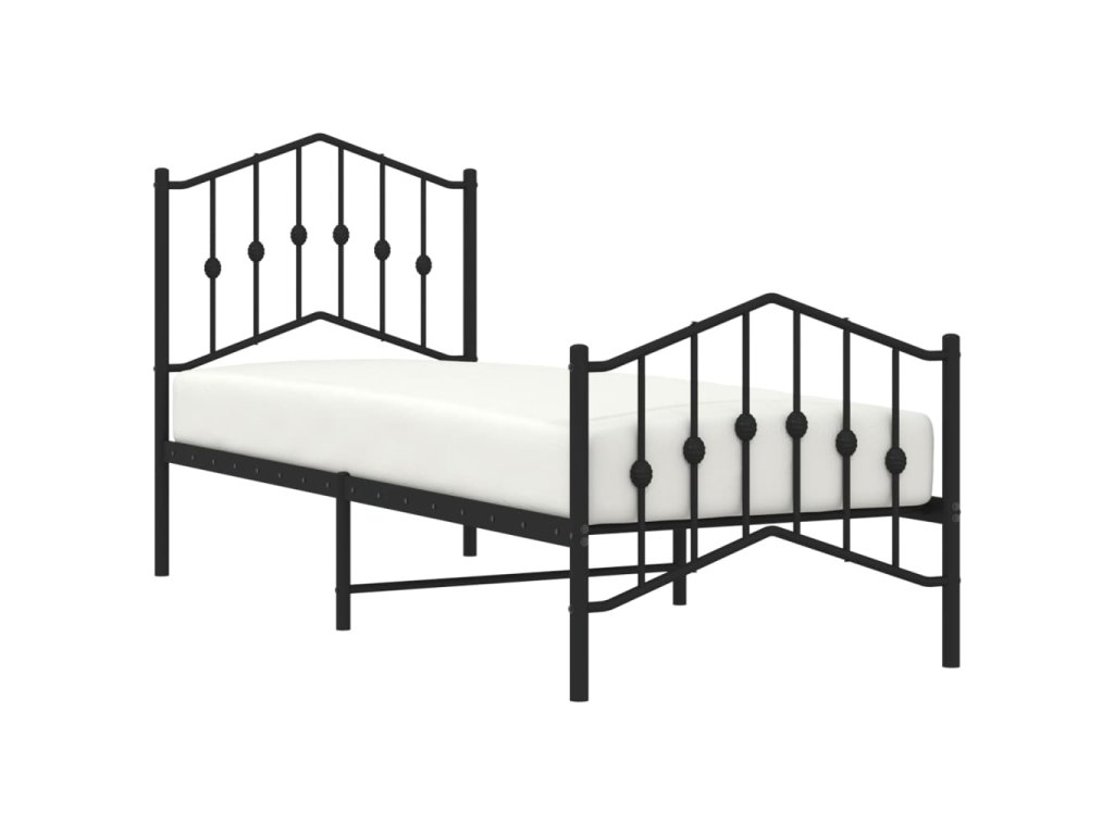 Kovový rám postele s hlavovým a nožním čelem černý 75 x 190 cm 373797