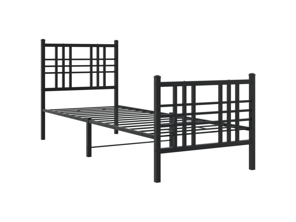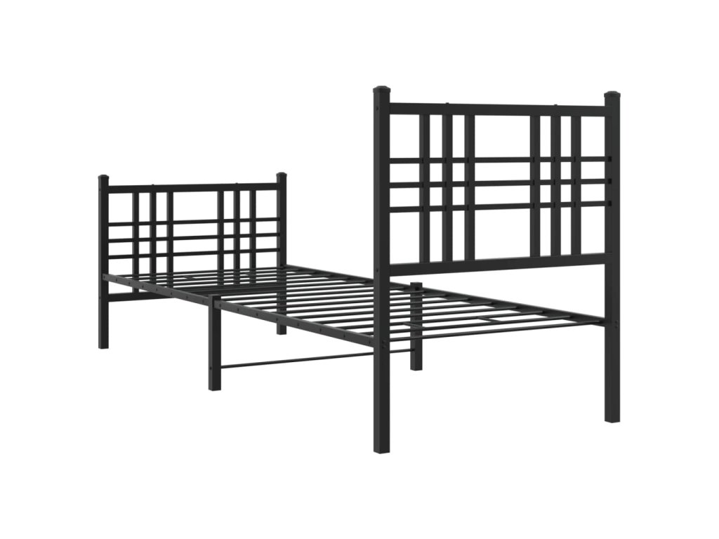 Kovový rám postele s hlavovým a nožním čelem černý 75 x 190 cm 376332