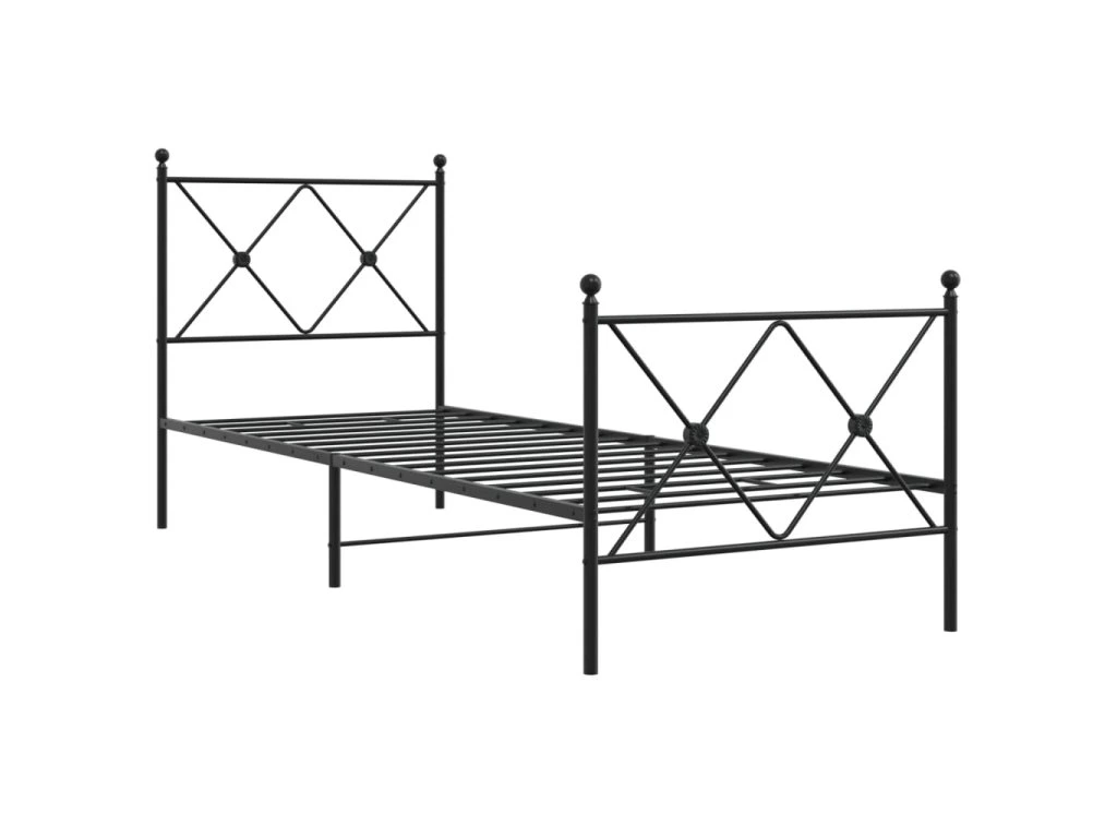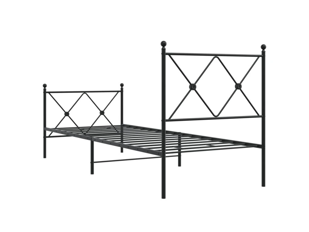 Kovový rám postele s hlavovým a nožním čelem černý 75 x 190 cm 376510