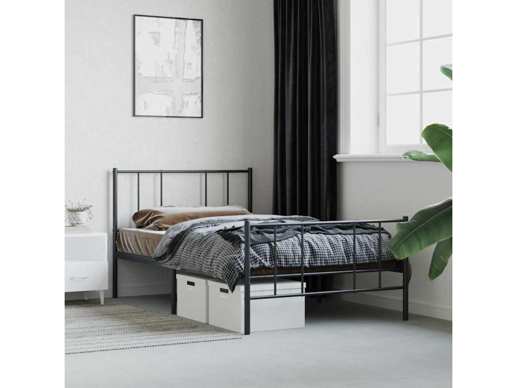 Kovový rám postele s hlavovým a nožním čelem černý 80 x 200 cm 352489