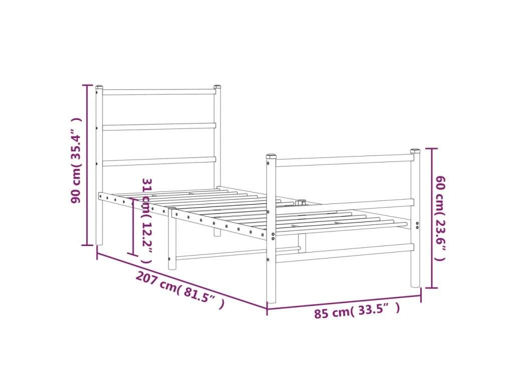 Kovový rám postele s hlavovým a nožním čelem černý 80 x 200 cm 355374