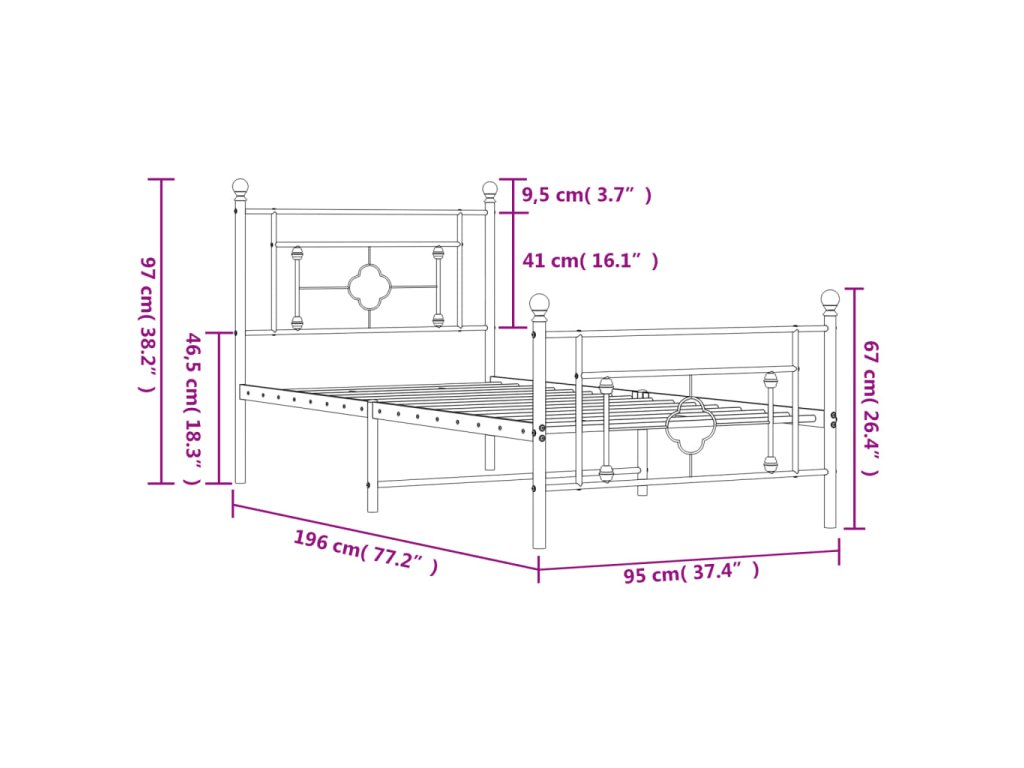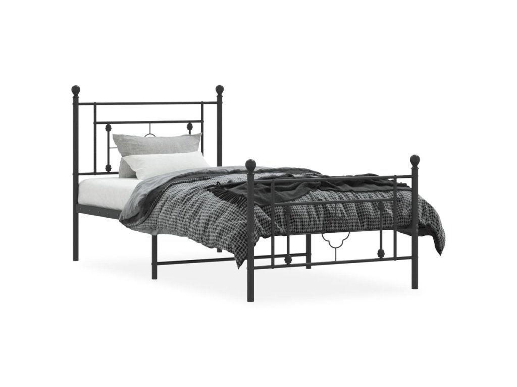 Kovový rám postele s hlavovým a nožním čelem černý 90 x 190 cm 374349