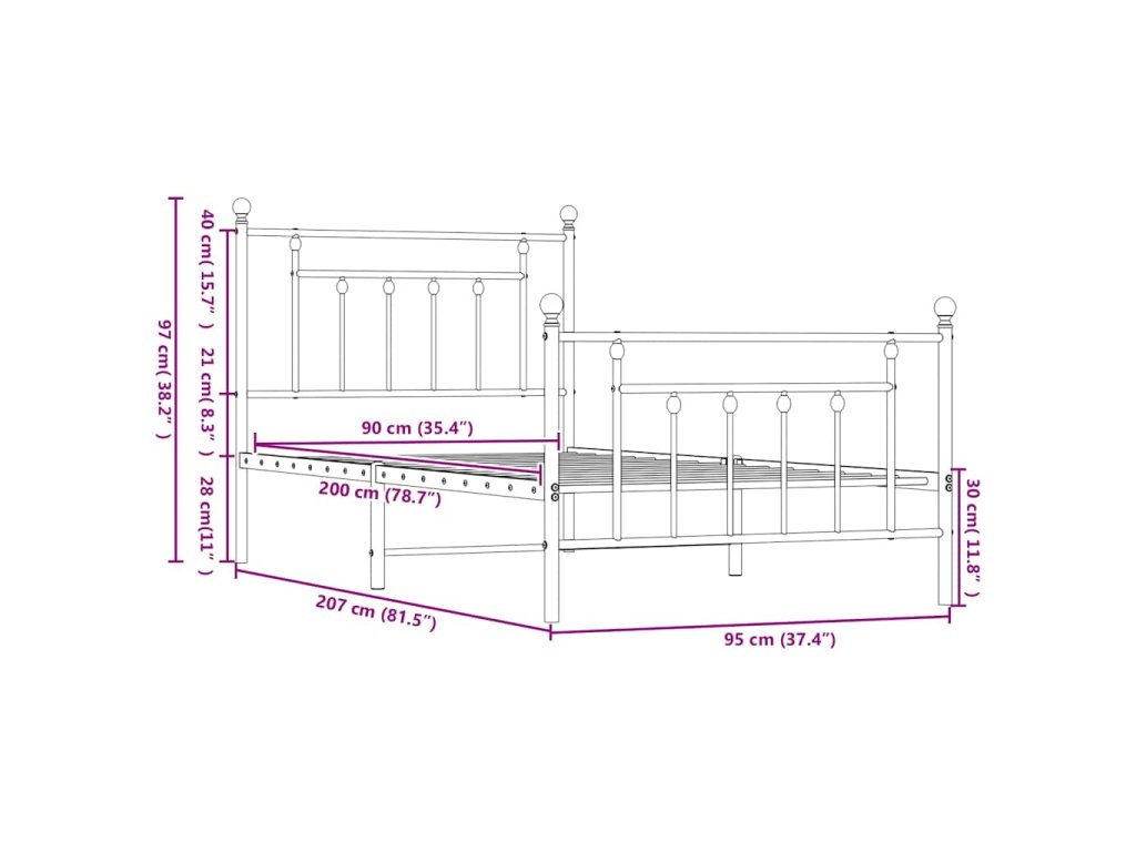 Kovový rám postele s hlavovým a nožním čelem černý 90 x 200 cm 353548
