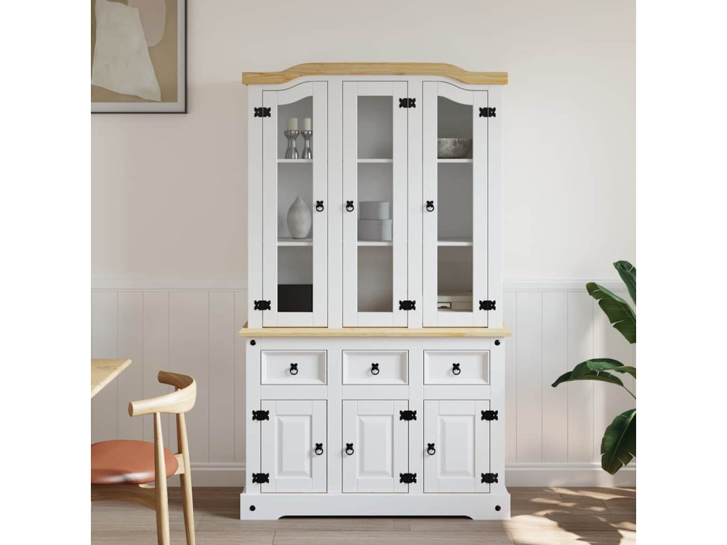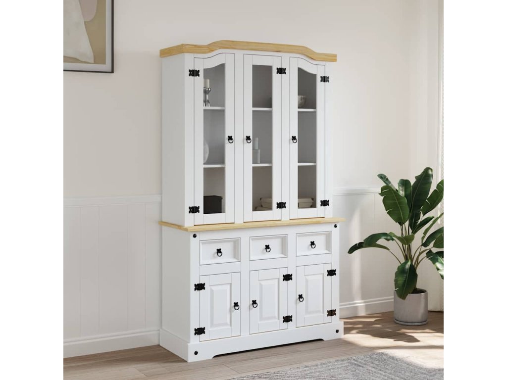 Kredenc Corona bílý 112 x 43 x 196 cm masivní mexická borovice 355086
