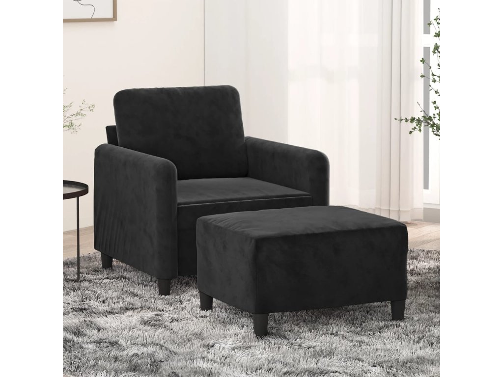 Křeslo s podnožkou černé 60 cm samet 3201169
