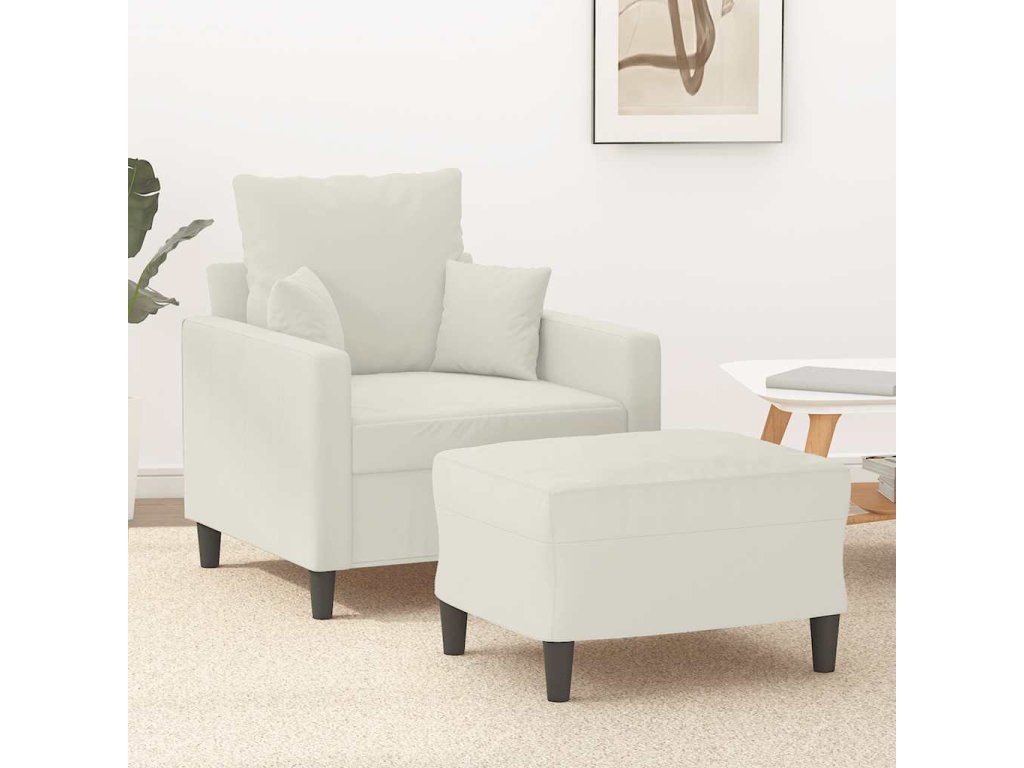 Křeslo s podnožkou krémové 60 cm samet 3201105