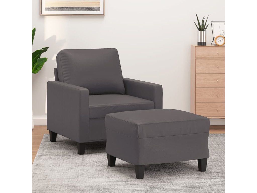 Křeslo s podnožkou šedé 60 cm umělá kůže 3201021