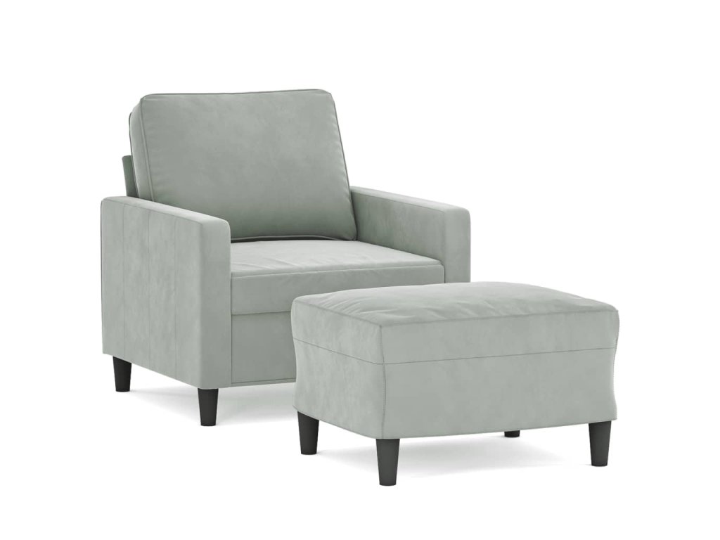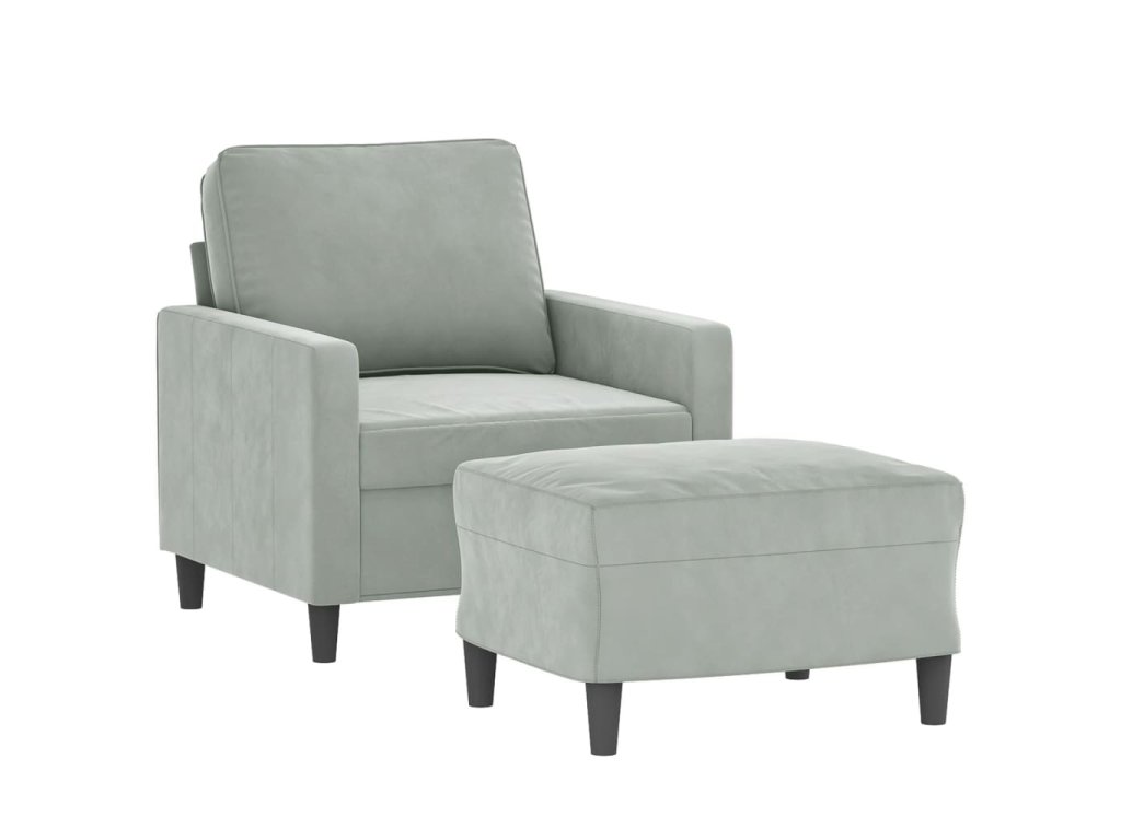 Křeslo s podnožkou světle šedé 60 cm samet 3201045