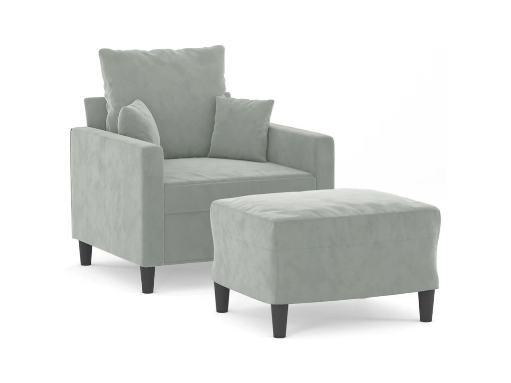 Křeslo s podnožkou světle šedé 60 cm samet 3201097