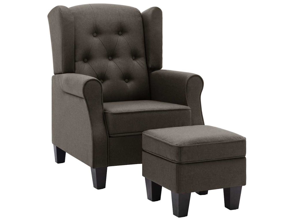Křeslo s podnožkou taupe textil 320159