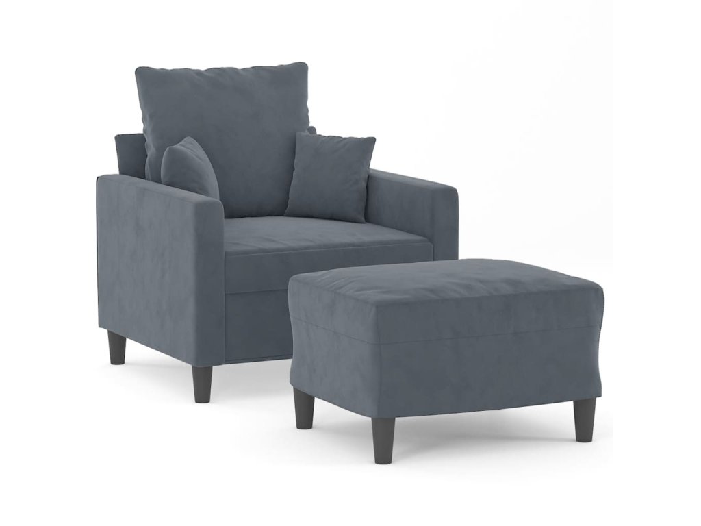 Křeslo s podnožkou tmavě šedé 60 cm samet 3201098