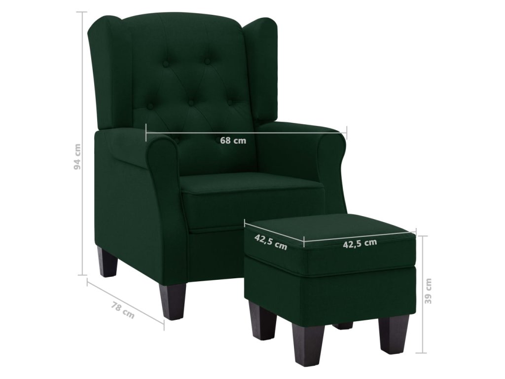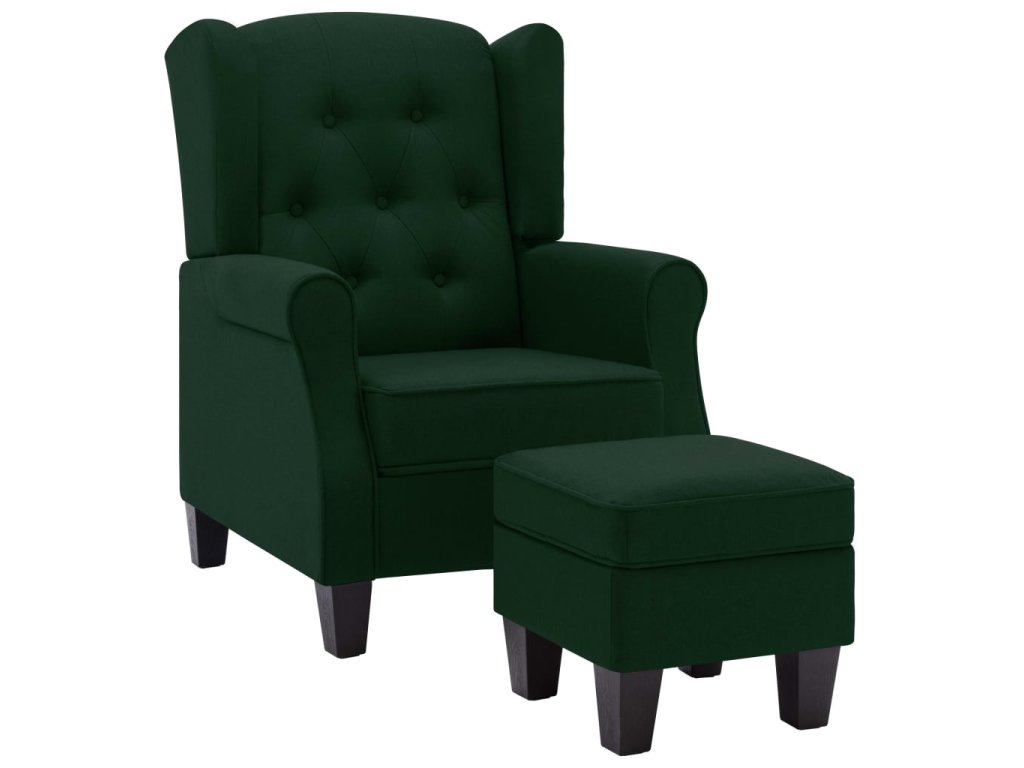 Křeslo s podnožkou tmavě zelené textil 320157