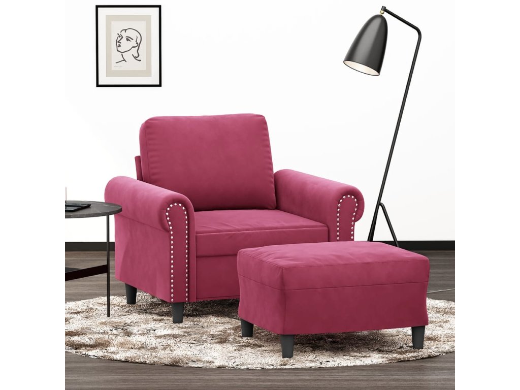 Křeslo s podnožkou vínové 60 cm samet 3201209
