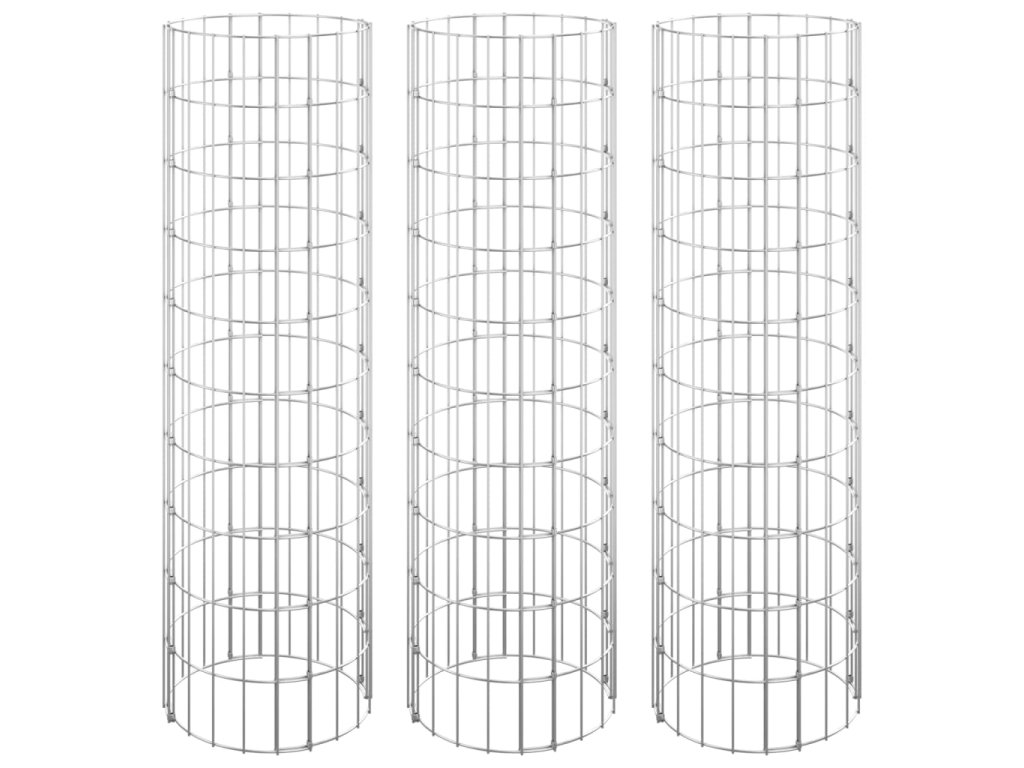Kruhové gabionové záhony 3 ks pozinkovaná ocel Ø 30 x 100 cm 152020