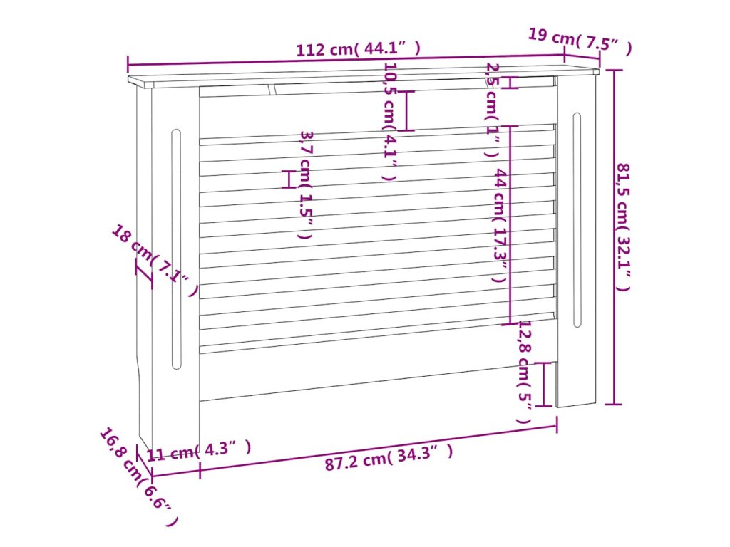 Kryt na radiátor bílý 112 x 19 x 81,5 cm MDF 284320