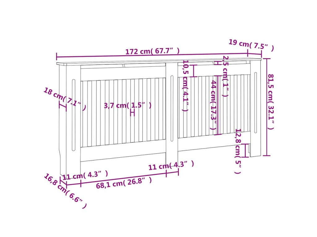Robustní a odolný kryt na radiátor je vyroben z vysoce kvalitního MDF. Tento kryt radiátoru má moderní vzhled s laťkovým designem, který se hodí do jakéhokoli stylu a je velmi snadné jej sestavit.