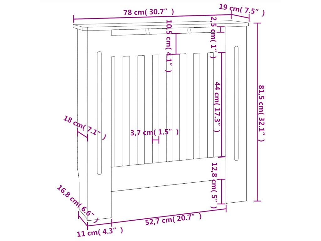 Kryt na radiátor je vyrobený z MDF, vyznačuje se tedy odolností a dlouhou životností. Upoutá pozornost moderním lamelovým designem, takže je vhodný pro jakýkoli dekor. Police vám poskytne dostatek místa pro umístění všech vašich knih, rámečků s fotografiemi, dekorací atd.Properties: