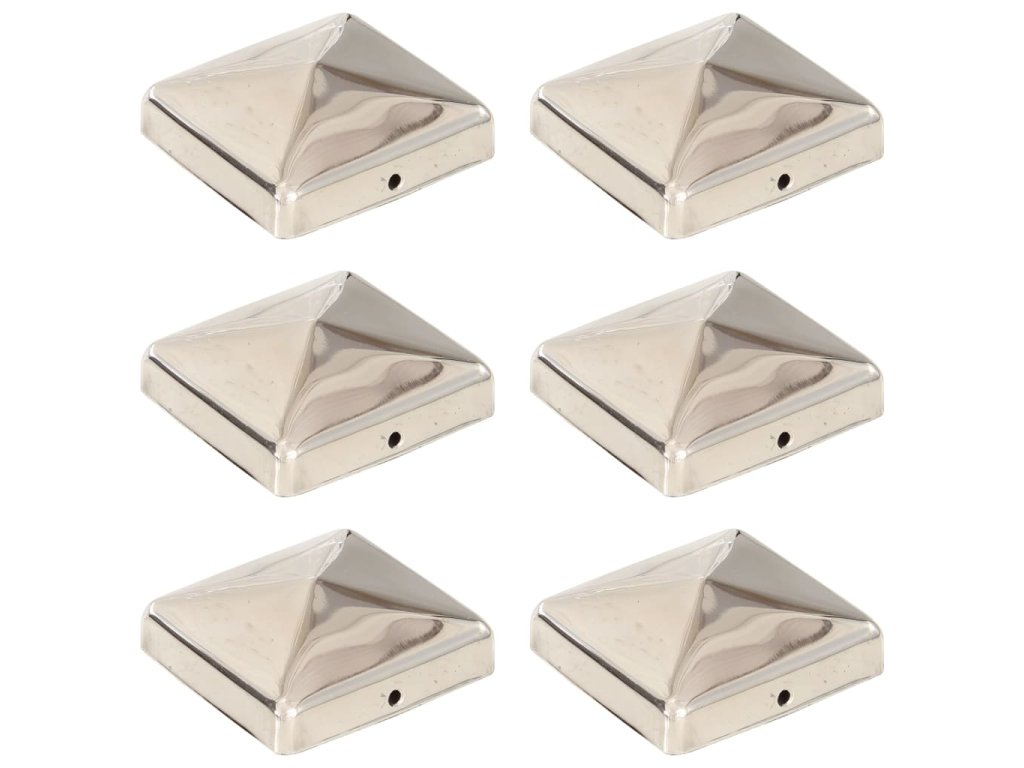 Krytky na plotové sloupky ve tvaru stříšky 6 ks nerez 71x71 mm 145485