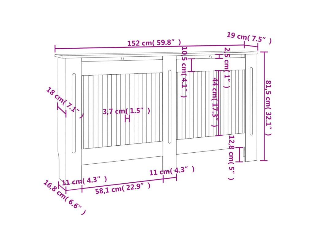 Je navržen tak, aby dodal vašemu radiátoru dekorativní charakter a zároveň vám poskytl dodatečný prostor pro vaše zarámované fotografie, knihy, ozdoby apod. Kryt na topení je vyrobený z vysoce kvalitní MDF, takže je pevný a odolný. Navíc má moderní, laťkový design, s nímž krásně zapadne do každé místnosti. Jeho sestavení je velmi snadné.
