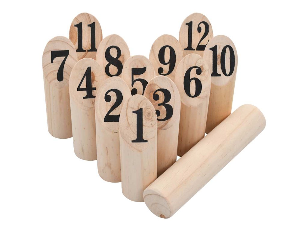 Očíslované kubby i házecí kolík jsou vyrobeny z masivního borového dřeva, jsou tedy mimořádně odolné a skvěle se hodí ke hraní venku. Kubb s čísly představuje vzrušující venkovní hru pro 2 nebo více hráčů – čím více, tím lépe!