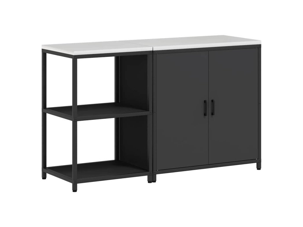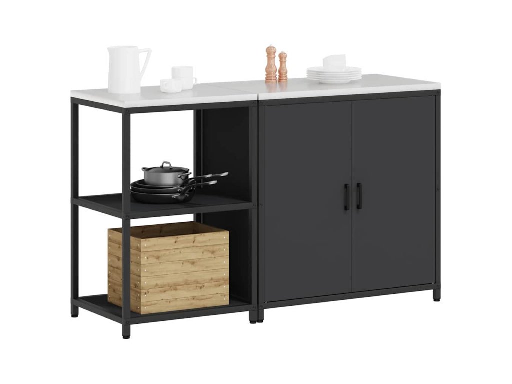 - Pevná ocelová konstrukce: Tato úložná skříňka je z robustní oceli a má minimalistickou strukturu – skvělý pro styl i trvanlivost. Udrží slušnej objem váhy a pomůže vám skladovat různý spotřebiče, nádobí a potraviny. Černý povrch jí dodává sofistikovaný vzhled, co se hodí do moderního interiéru.