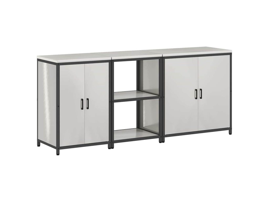- Nastavitelné nohy: Skříň má čtvercové, práškově lakované ocelové nohy s nivelátory, které se vyrovnávají s nerovnostmi podlahy. To znamená, že bude stabilní, i když máte rušnou kuchyň nebo plnou garáž.