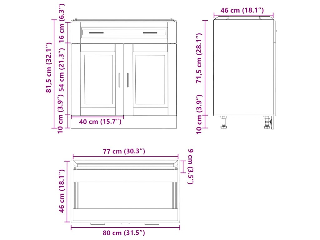 - Cabinet dimensions: 77 x 46 x 54 cm (Š x H x V)
