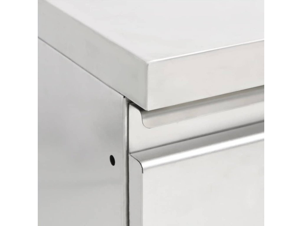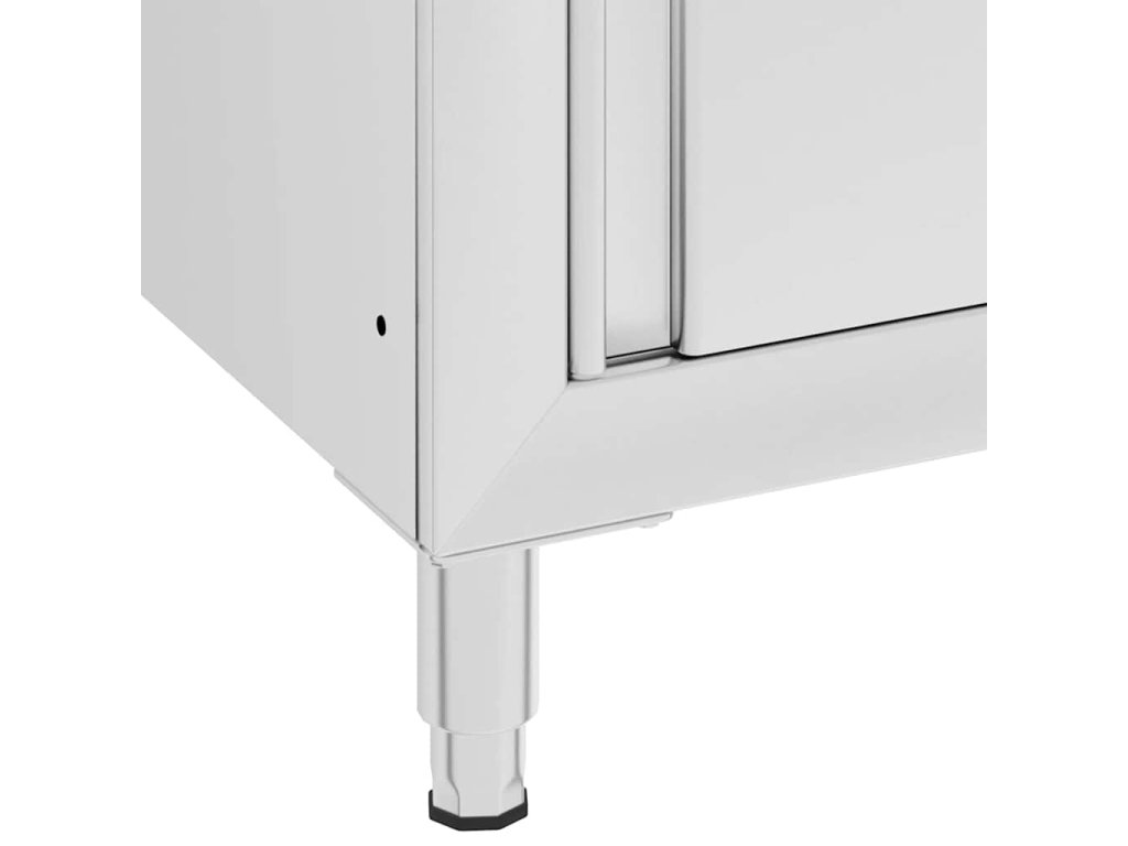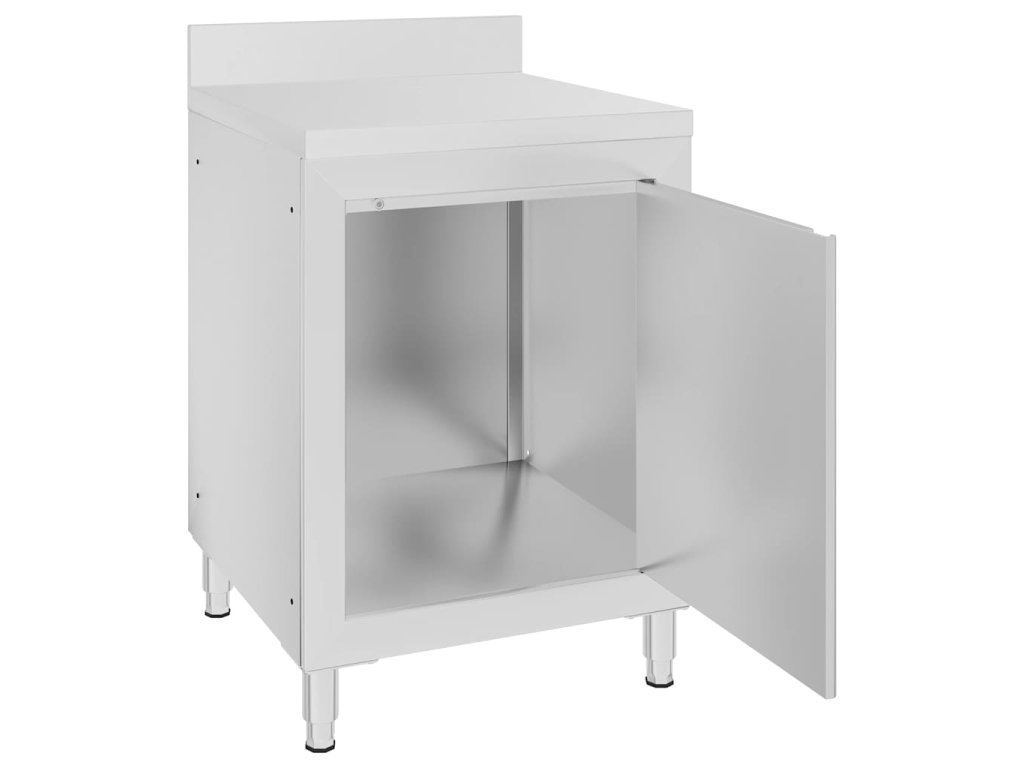 Tato úložní skříňka je vyrobená z kvalitní nerezové oceli a je robustní, antikorozní a snadno se čistí. Skříňka poskytuje dostatek úložného prostoru pro úklidové vybavení a příslušenství. Nastavitelné nožičky umožňují vyrovnat skříňku i na nerovné ploše. Součástí skříňky je 10 cm vysoký zadní lem a otvor na vodní trubku.