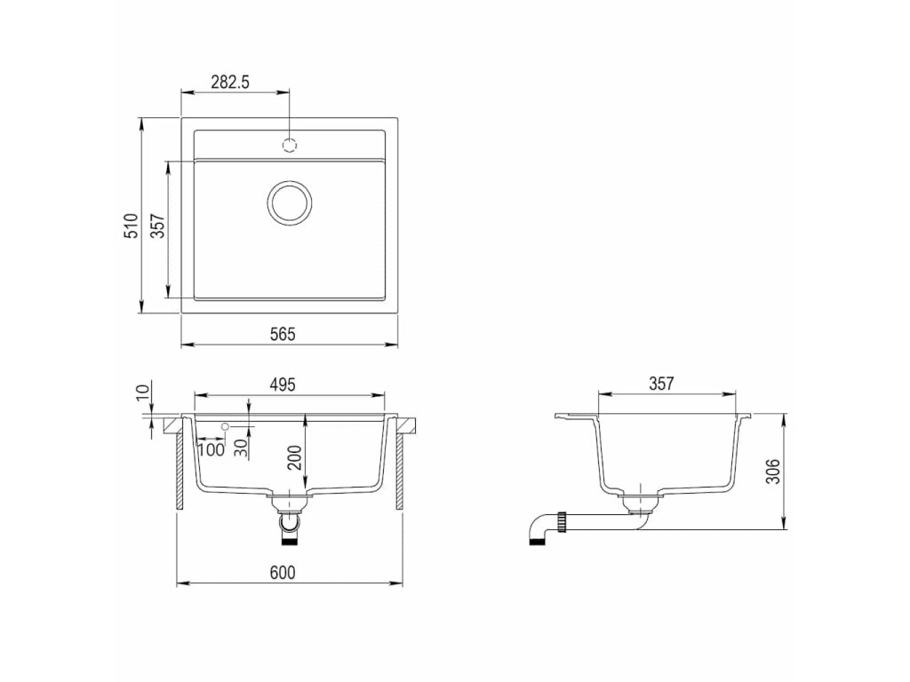 • Rozměry umyvadla: 495 x 357 x 200 mm (D x Š x H)