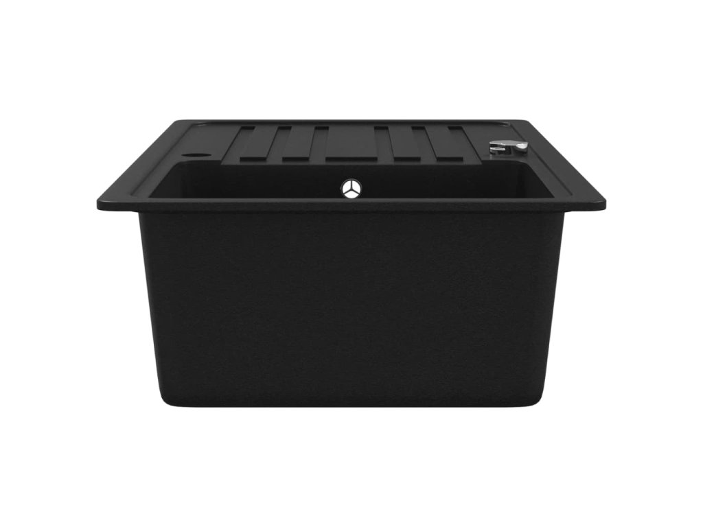 Kuchyňský dřez single žulový s odkapávačem reverzibilní černý 141669