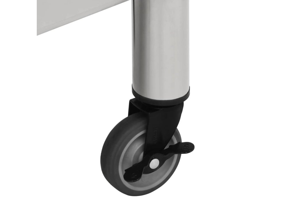 Tento gastronomický pracovní stůl je vyroben z nerezové oceli s dlouhou životností. Hladký povrch je odolný proti korozi a snadno se čistí. Dolní deska nabízí další úložný prostor. Pracovní stůl je vybaven 4 pohyblivými kolečky, takže jej můžete volně přemisťovat. Kromě toho jsou 2 kolečka vybavena brzdami, které udrží stůl na místě.
