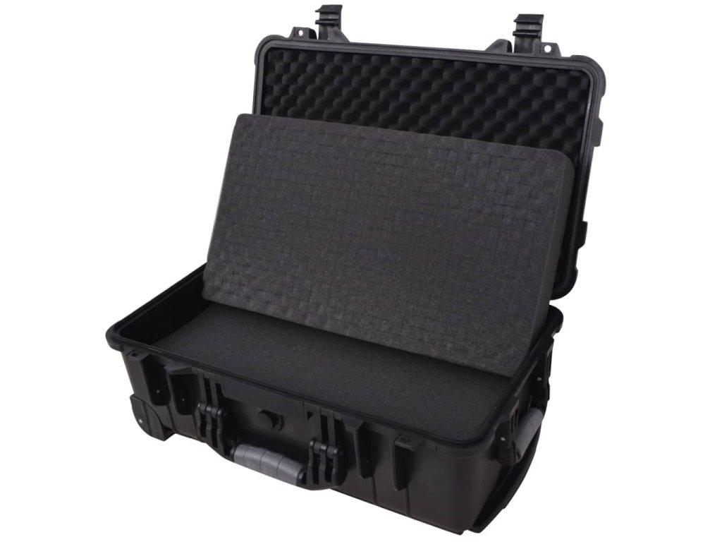 Tento kufr na nářadí vybavený kolečky a pěnovou výstelkou je vyrobený z robustního polypropylenu odolného proti poškrábání, je vodotěsný a chrání před poškozením a prachem. Na samém dně kufru je kus poměrně tenké pěny, která plní funkci pěnové podložky. Dále jsou vloženy dva kusy velmi husté pěny, jež pojmou vaše vybavení s maximální ochranou.
