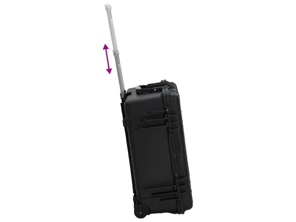 - Přenosné provedení: Praktická kolečka a výsuvná rukojeť umožňují pohodlnější přenášení kufříku.