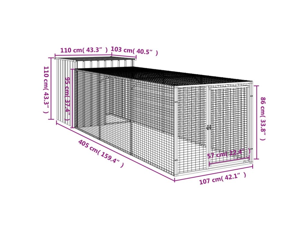 Kurník s výběhem antracitový 110x405x110 cm pozinkovaná ocel 3189089